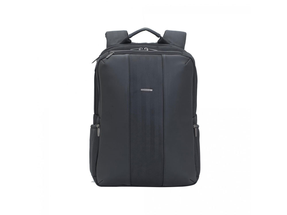 Рюкзак для ноутбука до 15.6. • Рюкзак для ноутбуков до 15.6. • Рюкзак выполнен из высококачественной искусственной кожи и полиэстера, имеет утолщенные стенки для лучшей защиты ноутбука от случайных ударов и царапин, а также от пыли и влаги. • Рюкзак имеет два отделения на молнии. Первое отделение имеет карман для планшета до 10.1 и документов. Во втором, органайзер для хранения аксессуаров, флэш-накопителей, смартфона и карман на молнии для бумажника, документов. • На верхней панели карман на молнии для смартфона, 7 планшета. • Металлическая, оригинальная фурнитура. • Удобная ручка для транспортировки. • Сетчатый материал задней стенки рюкзака обеспечивает циркуляцию воздуха для максимального комфорта вашей спины. • На задней стенке имеется ремень крепления к багажной сумке и скрытый карман на молнии для паспорта, бумажника. • Два боковых кармана на молнии для ёмкостей с водой или других мелочей. • Специальная система крепления ремешков на липучке. Внутренний/Внешний размер (мм): 290x400x40/ 310x440x120 Вес: 795 г. Материал: Полиэстер, искусственная кожа. Цвет: Черный. Термотрансфер (1 цвет (цветные изделия)) на данный товар осуществляется бесплатно. Оплачивается только настройка оборудования в размере 10000 рублей на весь тираж.